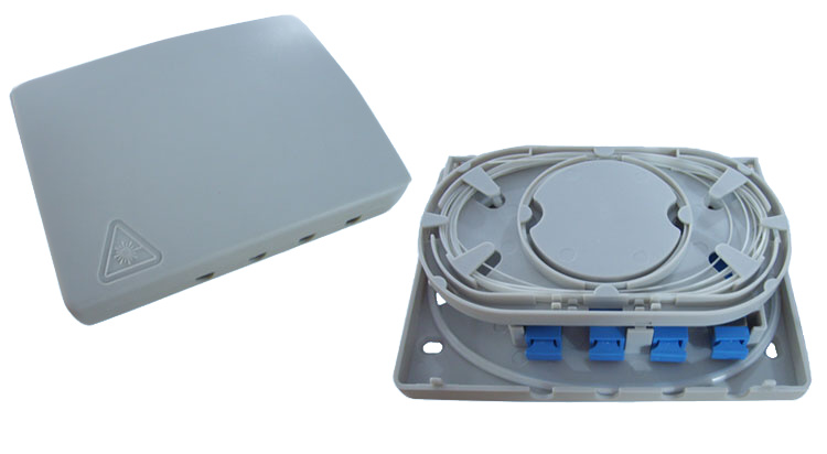 Zásuvka optická na omítku pro až 4x SC (LC duplex) včetně výklopné zazety a 4x ochr. sváru. Rozměr 150x110x33mm